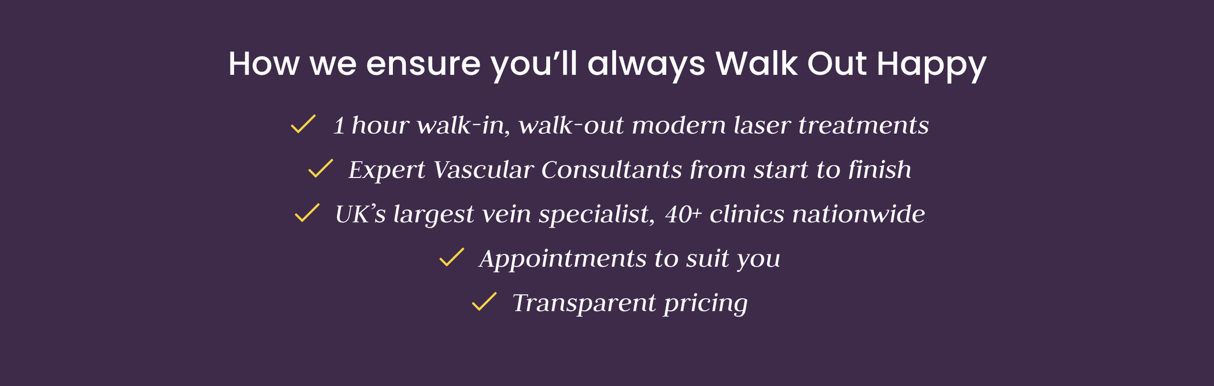 This call to benefits also showcases one of the key reasons for choosing Veincentre: the procedure is so easy you don’t need to be off work, or spend time in hospital – you literally walk out afterwards.
